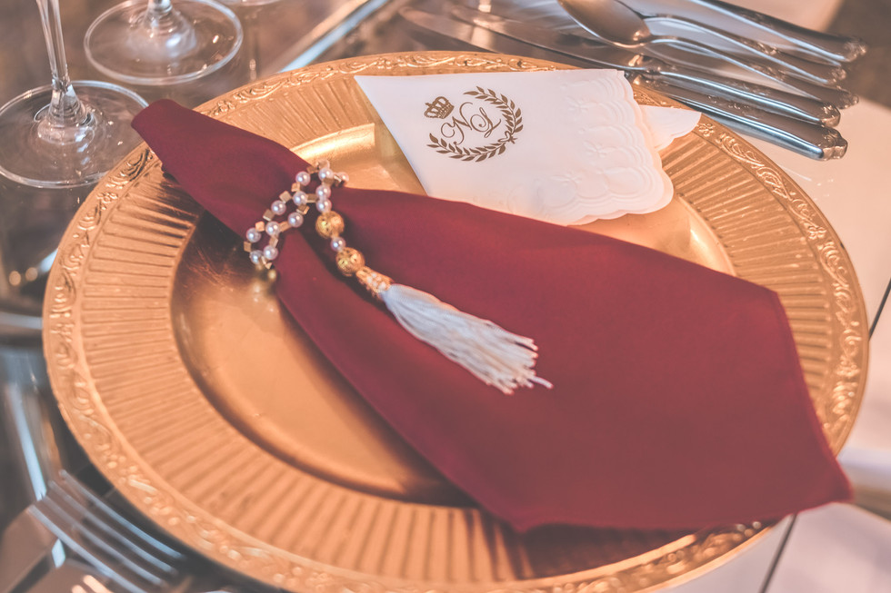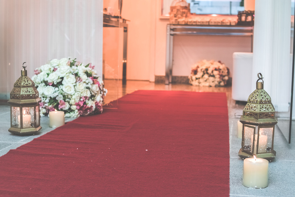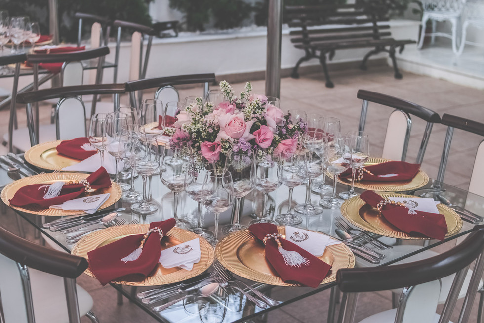 As peças foram todas locadas e os móveis o salão de festas disponibilizou. Cada detalhe da decoração foi pensado por mim, desde os talheres até as flores, o buffet tudo escolhido a dedo.